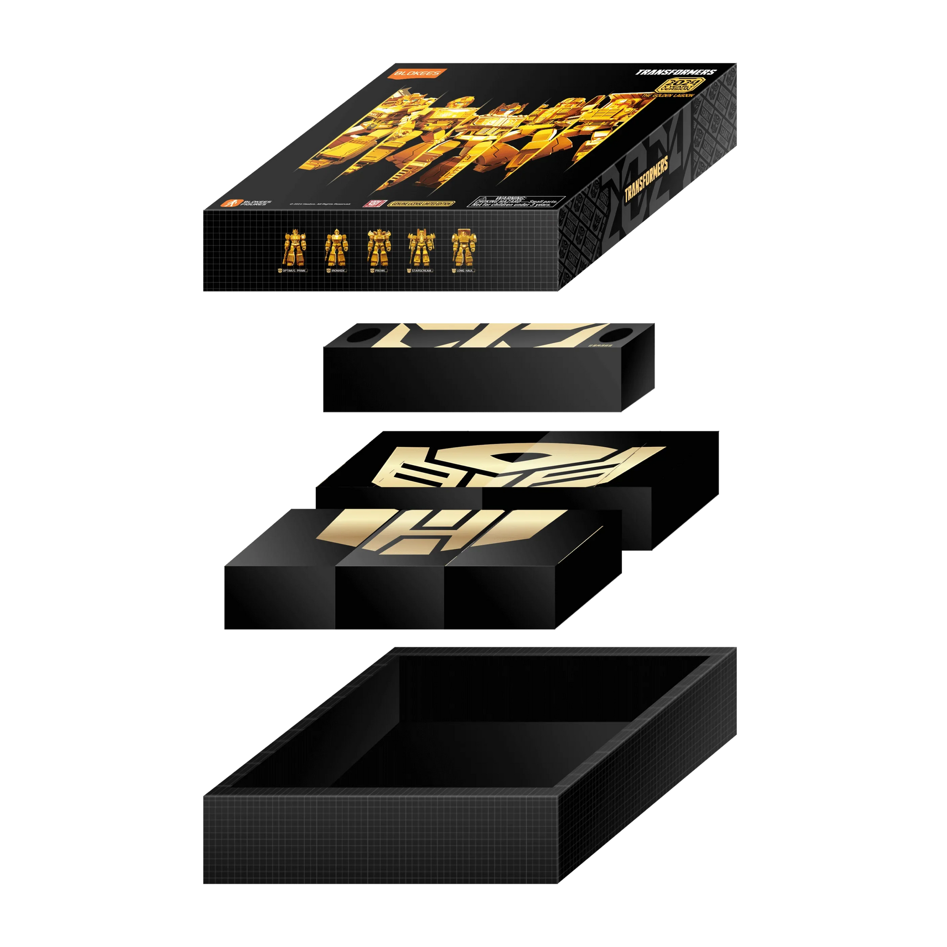 Unbox the limited edition Transformers 2024 Yearly Version: The Golden Lagoon! This collection features five unique figures, each with a limited edition gold coating and upgraded glowing features. With special lighting modules, fluorescent materials, and 20+ points of articulation, these figures bring your favorite characters to life in vibrant detail.