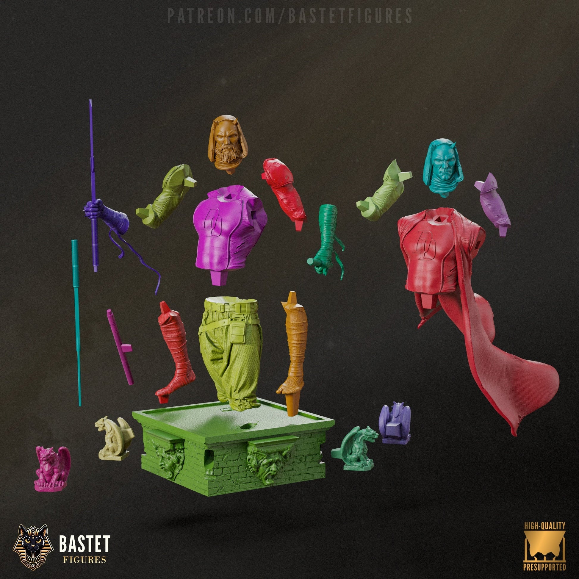 Daredevil reimagined in 1:8 scale, featuring a full warrior-style figurine with rooftop gargoyle base, and an alternate bust. Fully modular with interchangeable parts and suited for comic fans and display collections. Great for Marvel bust collectors and painters.