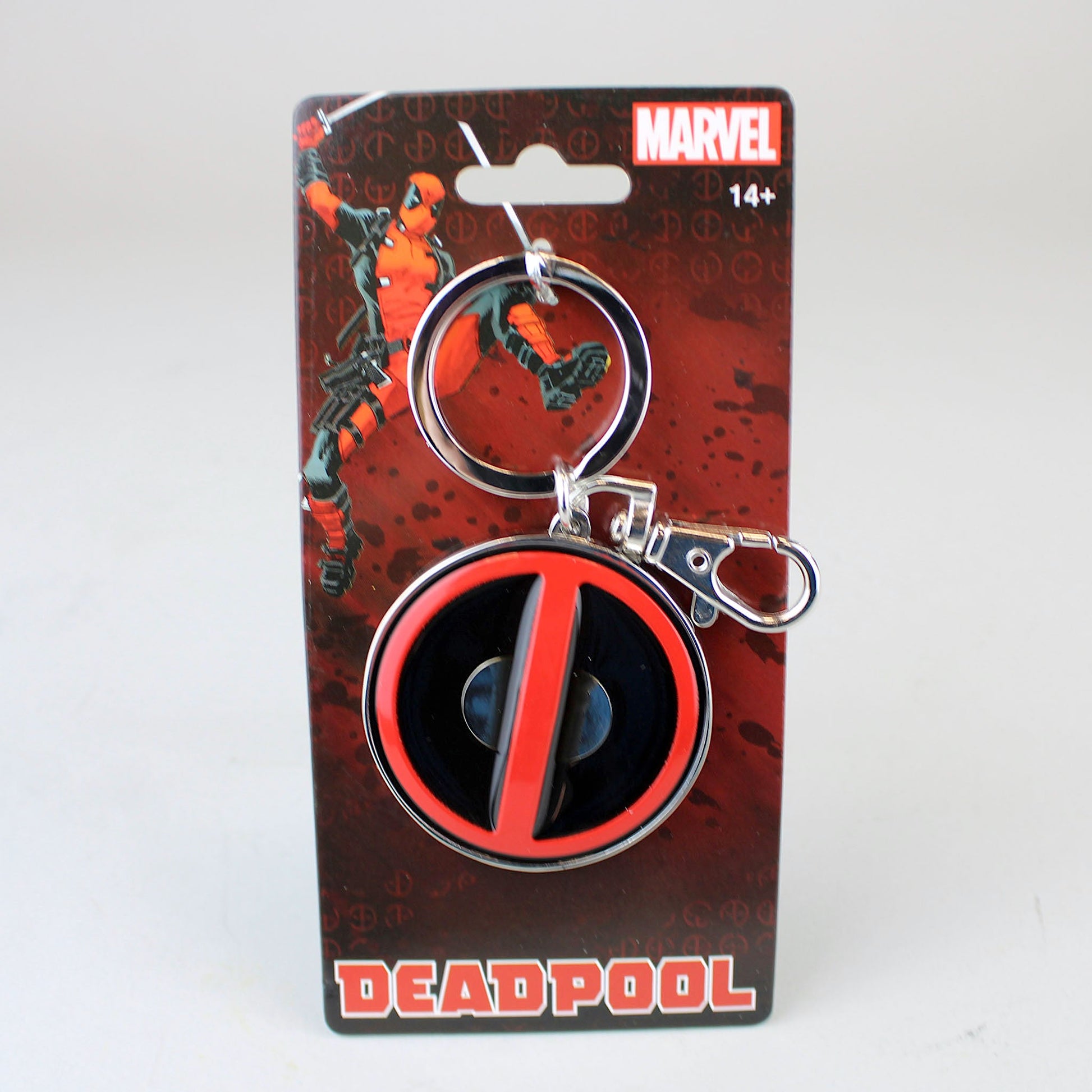 Bring your favorite humorous superhero with you everywhere! This pewter keychain features Deadpool's iconic crest in a solid keychain, perfect for attaching to your favorite keyring, bag, or clipping onto your backpack!