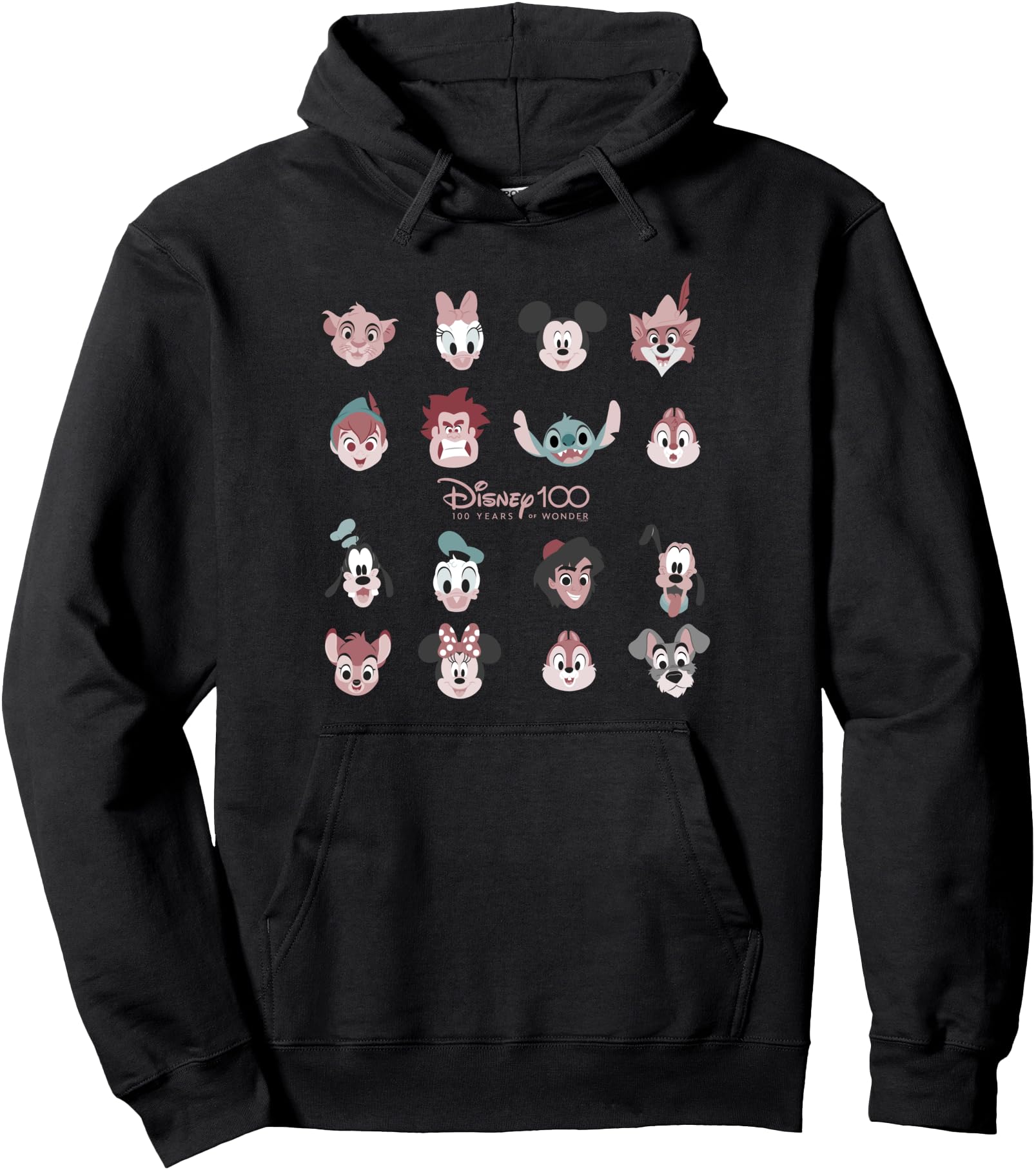 Disney Hoodie - 100 Years of Wonder Famous Faces Muted Cute D100 Pullover