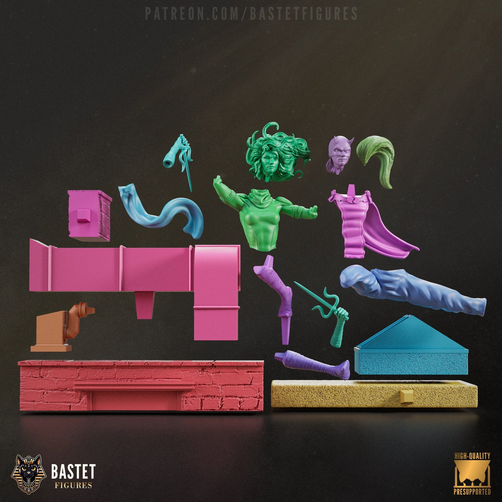 Elektra leaps from the rooftops in this 1:8 scale Marvel collectible set, featuring her full rooftop diorama, a twin-sai-wielding bust Includes modular parts, masked and unmasked heads, and enough attitude to scare Daredevil straight.