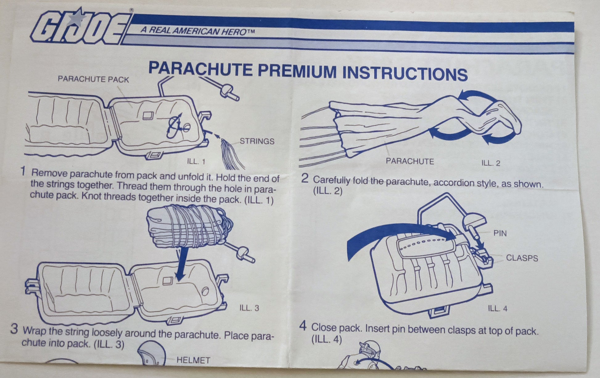 1984 G.I. Joe Parachute Pack from Hasbro. Loose, incomplete, includes blueprints, 1 oxygen mask and 2 black helmets.