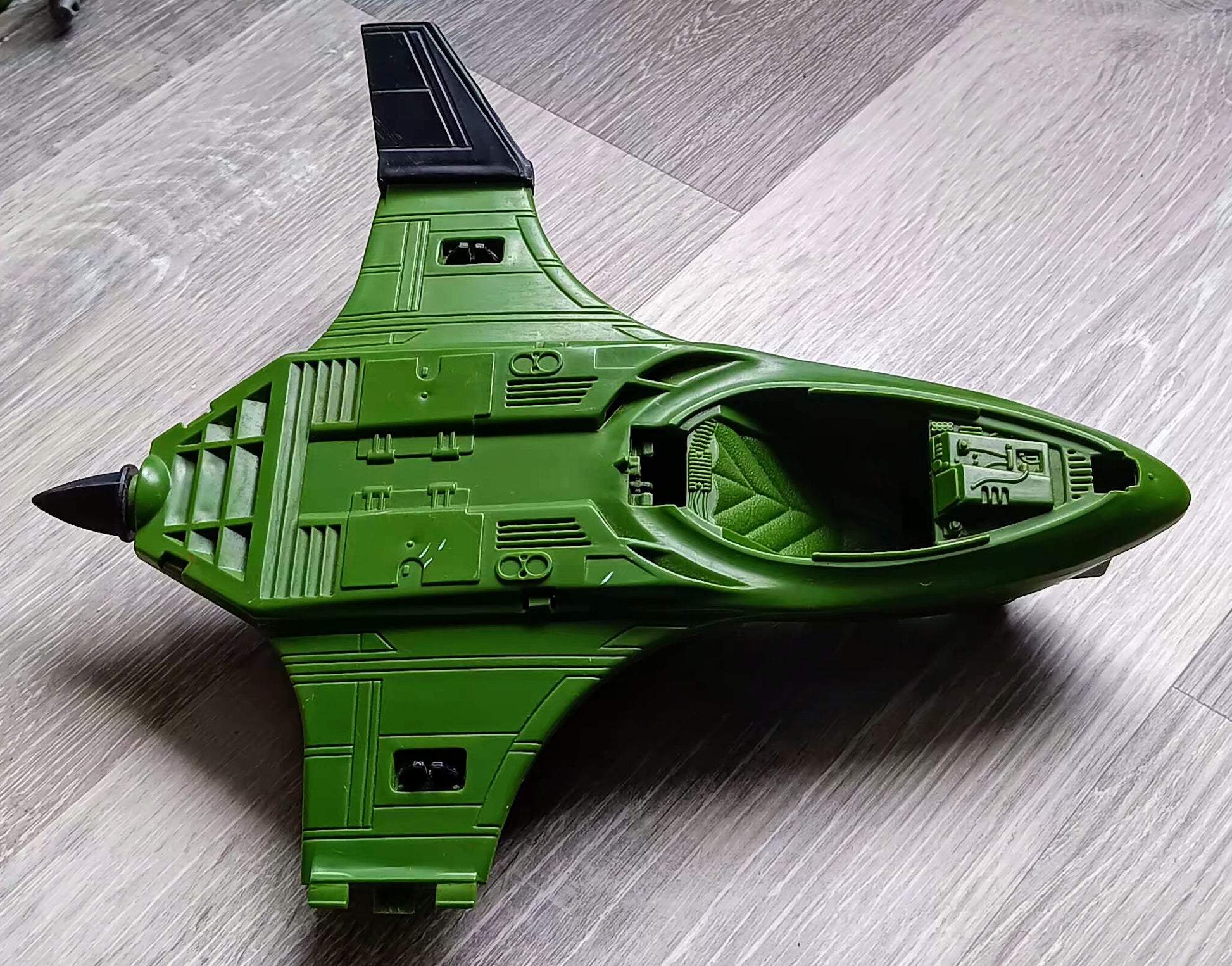 1988 G.I. Joe Vehicle from Hasbro - Mudfighter with Dog Fight. Loose, incomplete, includes Dogfight, 3 missiles and 7 bombs. Missing right landing gear, canopy and tail rotor.
