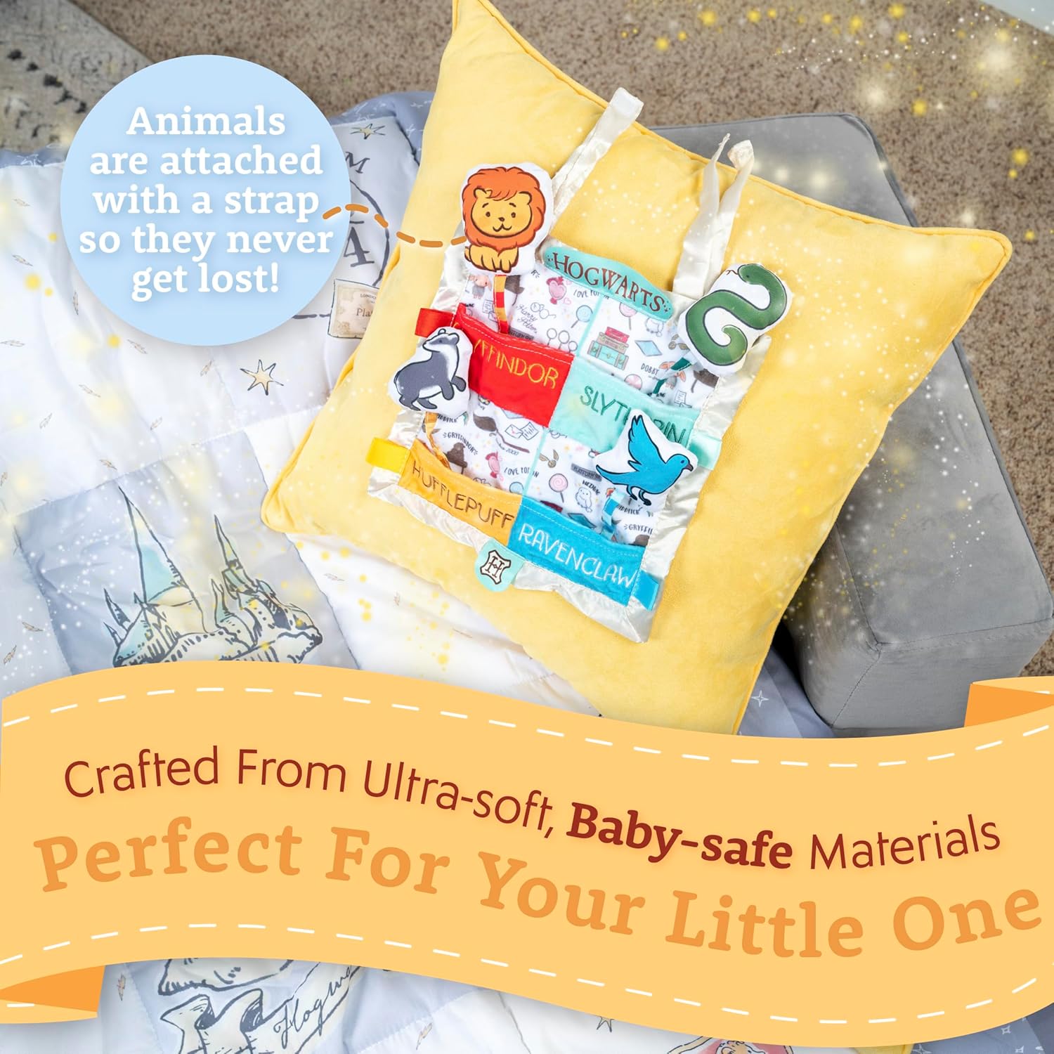 Designed with fun in mind, this activity blanket includes vibrant patches with crinkle sounds and peek-a-boo pockets that captivate your child's attention. The multiple textures invite tactile curiosity, while the plush characters and Velcro straps provide convenience for on-the-go fun, ensuring your little one can take a piece of the magic wherever they venture. Ideal for gifting at baby showers, for newborn arrivals, or first birthdays, this adorable lovey blanket is suitable for both boys and girls from birth through toddlerhood. Packaged in a lovely windowed gift box, itβs a perfect choice for any Hogwarts fan!
