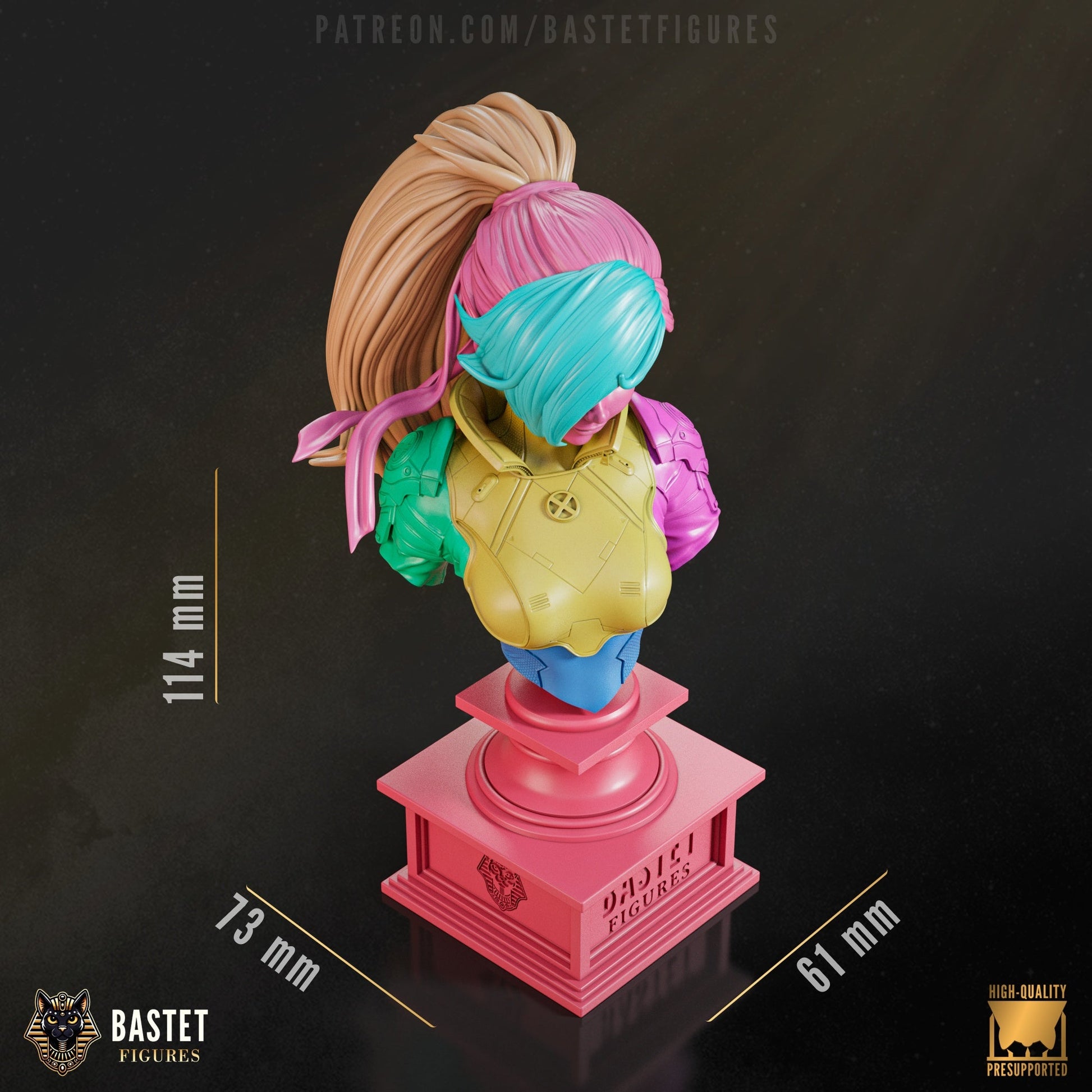 This 1:8 scale Rogue collectible features the iconic X-Men heroine in a bold stance with futuristic armor and layered hair. Includes both full-body figure and bust versions with modular parts for easy printing and painting. A must-have for Marvel fans and superhero display collectors.
