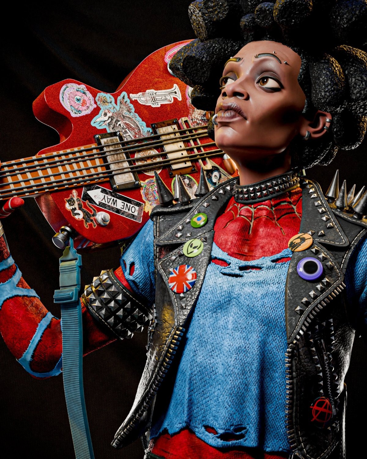 Spider-Punk rocks out in this Marvel Comics fan art collectible, available in 1:6, 1:9, and 1:12 scale. Decked in punk-styled gear with spiked vest, patterned pants, and red boots, he wields his signature guitar across his shoulder while standing on a speaker base. Perfect for Spider-Verse fans.