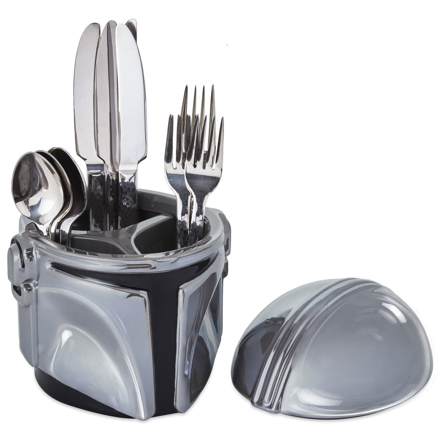 - Star Wars: The Mandalorian ceramic caddy features a helmet design with removable lid and divider.
