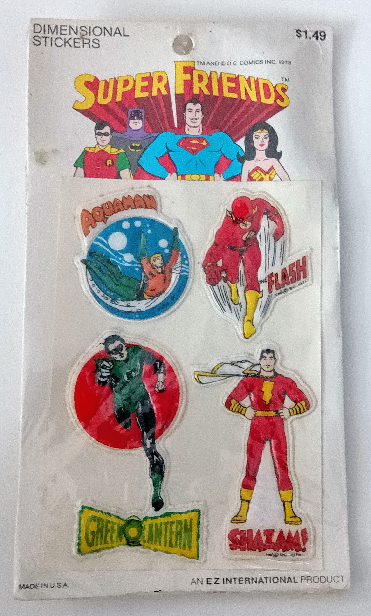 1973 Super Friends Dimensional Stickers. Sealed in original packaging.